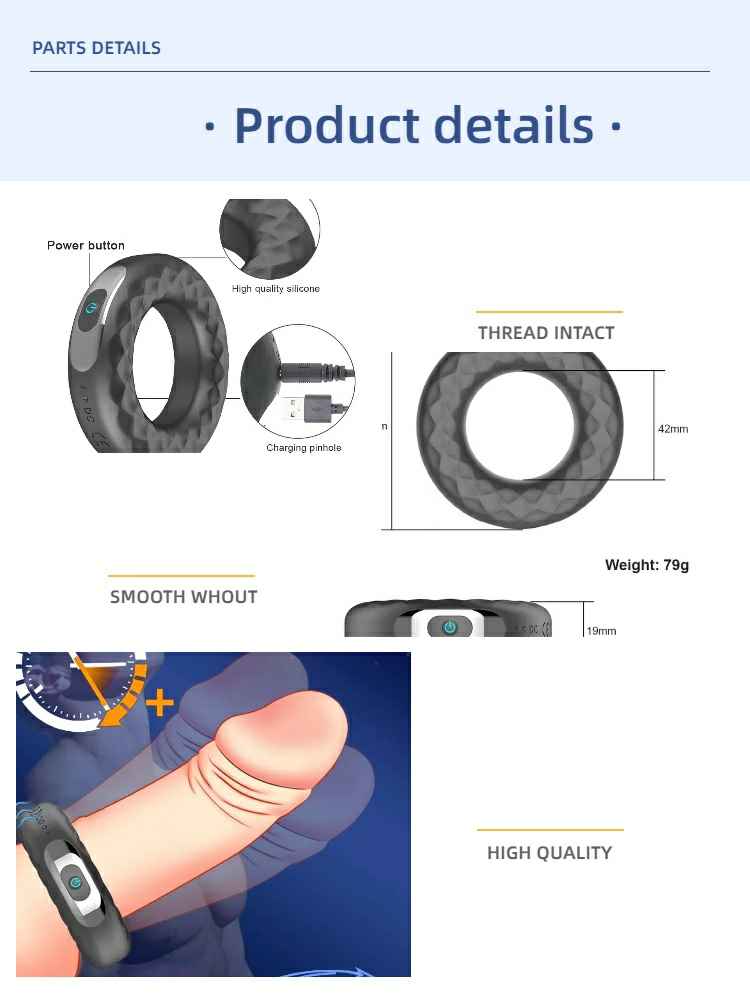VIP19 Rechargeable silicone vibration lock sperm ring male delay masturbator