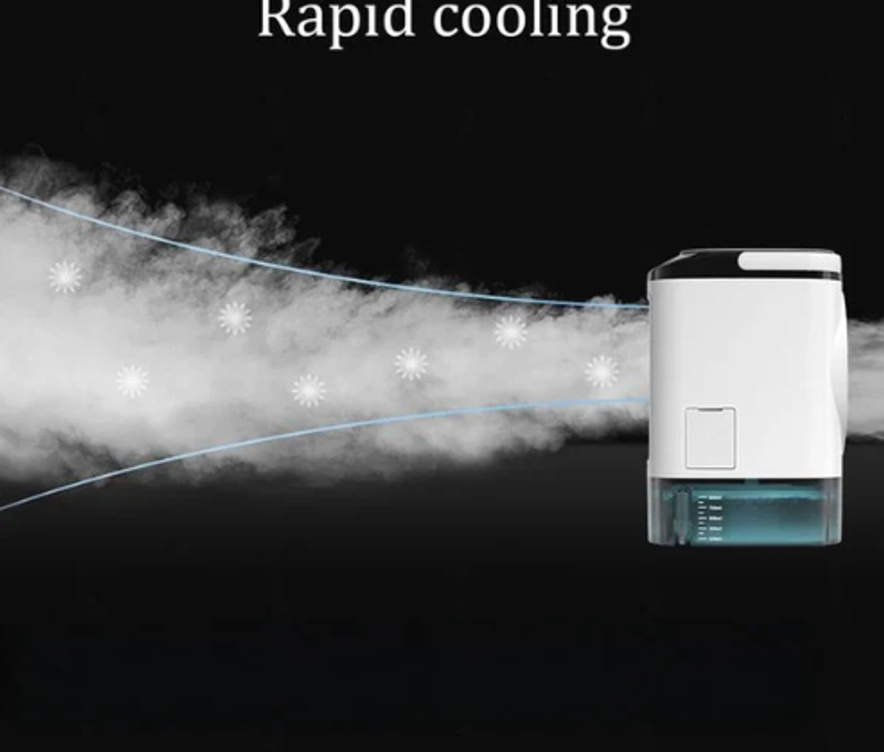 LARGE WATER TANK + ICE BOX - Equipped with a large-capacity water tank and dedicated ice box, it can continuously produce mist for several hours after a single refill. This extends the cooling effect and reduces the need for frequent refills, making it ideal for extended use.