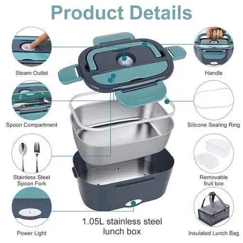 Multifunction: Stylish electric lunch box is versatile, as well as functional. Large capacity with a separate fruit box can hold salads. The silicone sealing cover does not leak when the lid is tight, and curry rice, noodles, beef stew, and potato soup can be easily carried.