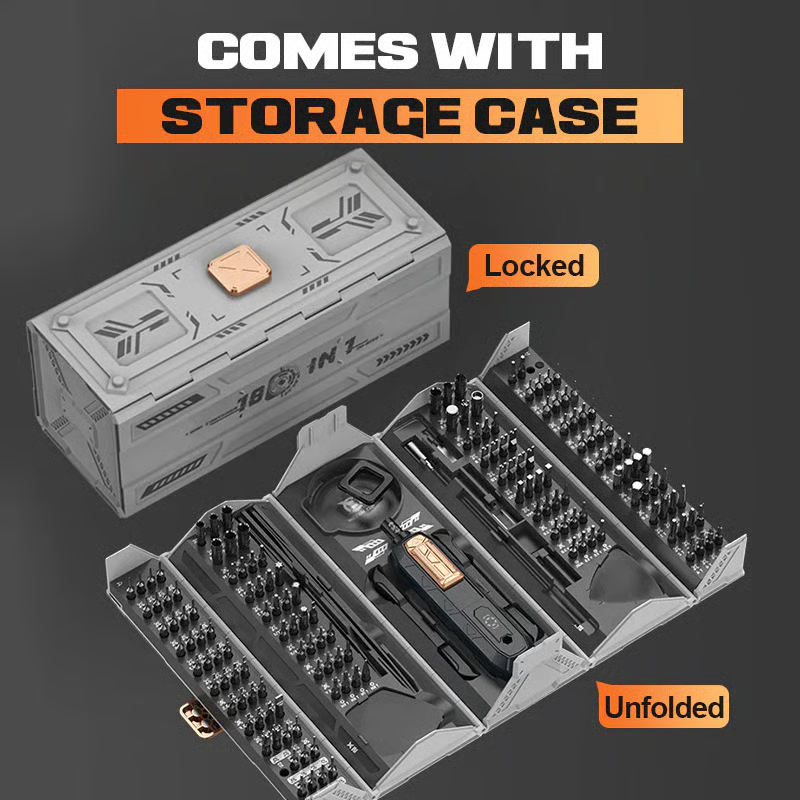 180-IN-1 TOOLKIT: Get all the tools you need in one convenient package. Our professional screwdriver kit includes a comprehensive selection of precision screwdriver bits, tweezers, extension rods, etc., making it suitable for a variety of repair and assembly tasks.