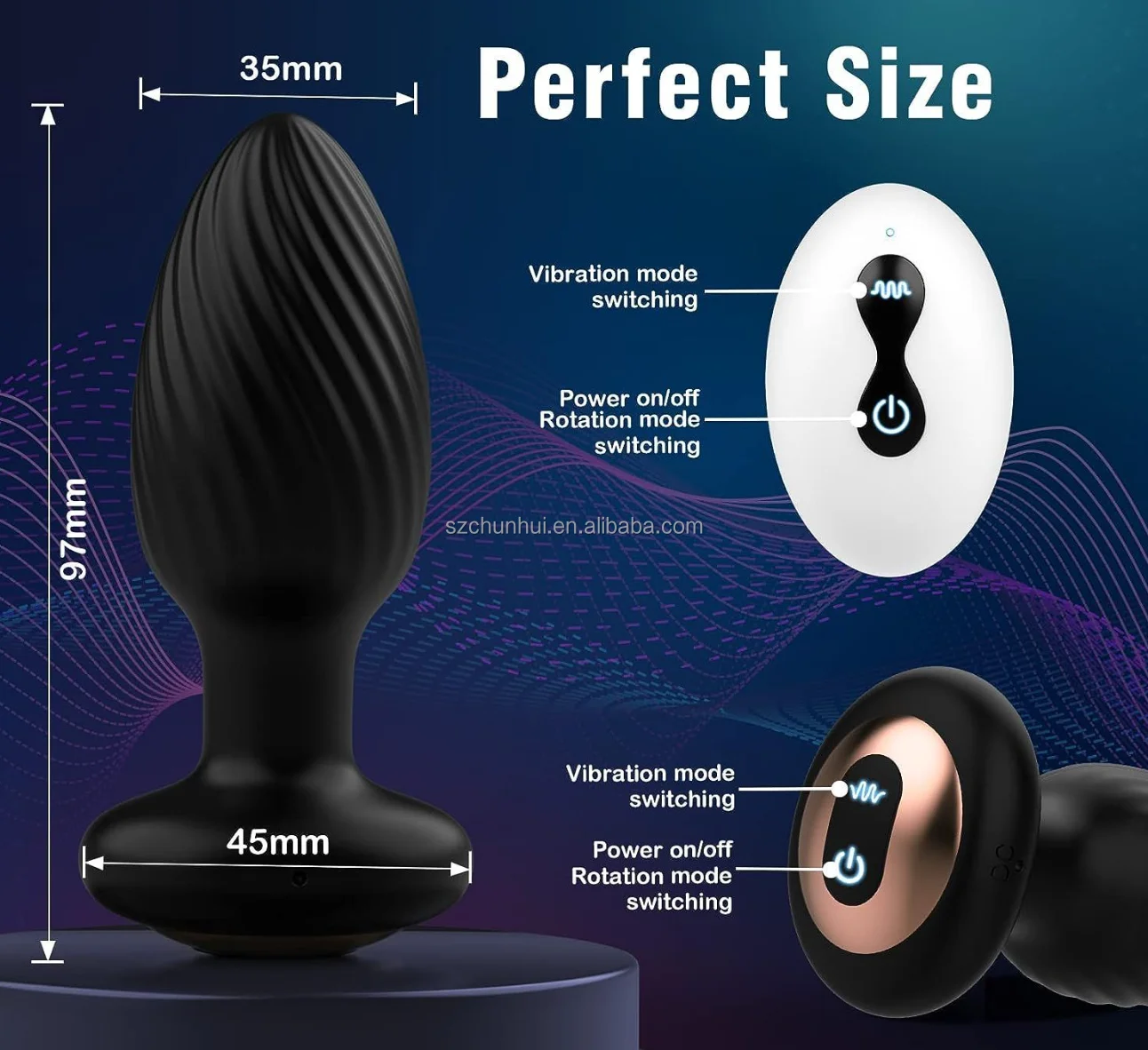 Hot Sales Remote Control Prostate Massager 360 Rotation Vibrating Butt Plug Anal Toys for Men Women